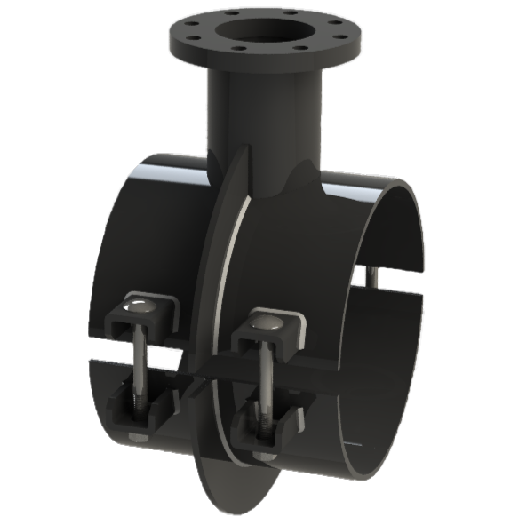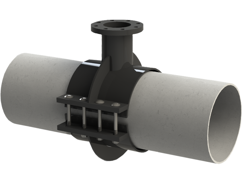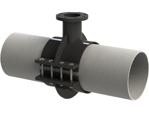 Der geteilte Überschieber mit Flanschabgang aus Stahl, optimal geeignet für das anbohren unter Druck.